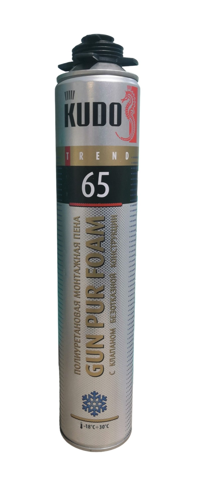 Зимняя монтажная пена KUDO TREND 65 обладает высокой адгезией к большинству строительных материалов, таких как: бетон, кирпич, штукатурка, дерево, пластик, за исключением полиэтилена, полипропилена и фторопласта.