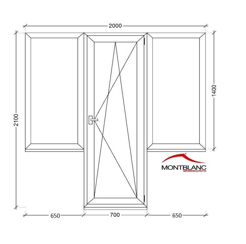 Пластиковая дверь ПВХ балконная 2000*2100 с глухими боковыми окнами (Montblanc 5кам)