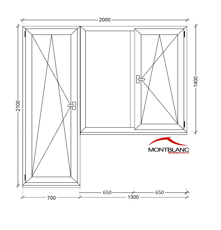 Пластиковая дверь ПВХ балконная левая 2000*2100 с окном, створка поворотно-откидная (Montblanc 5к