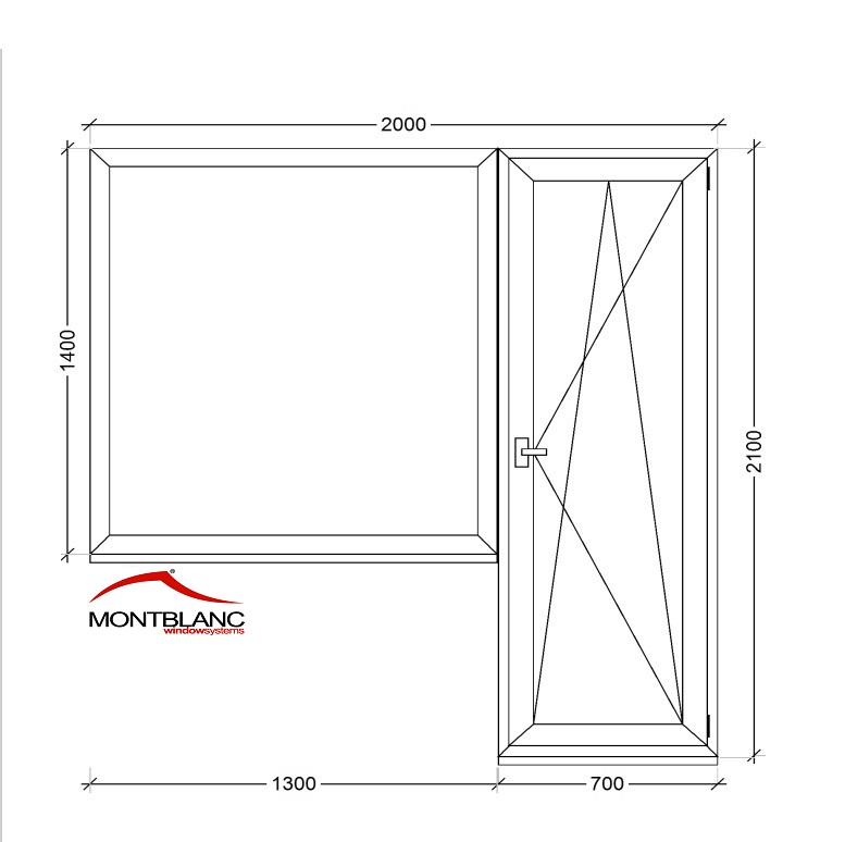 Пластиковая дверь ПВХ балконная правая 2000*2100 с глухим окном (Montblanc 5кам)
