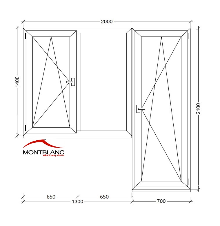 Пластиковая дверь ПВХ балконная правая 2000*2100 с окном, створка поворотно-откидная (Montblanc 5к)