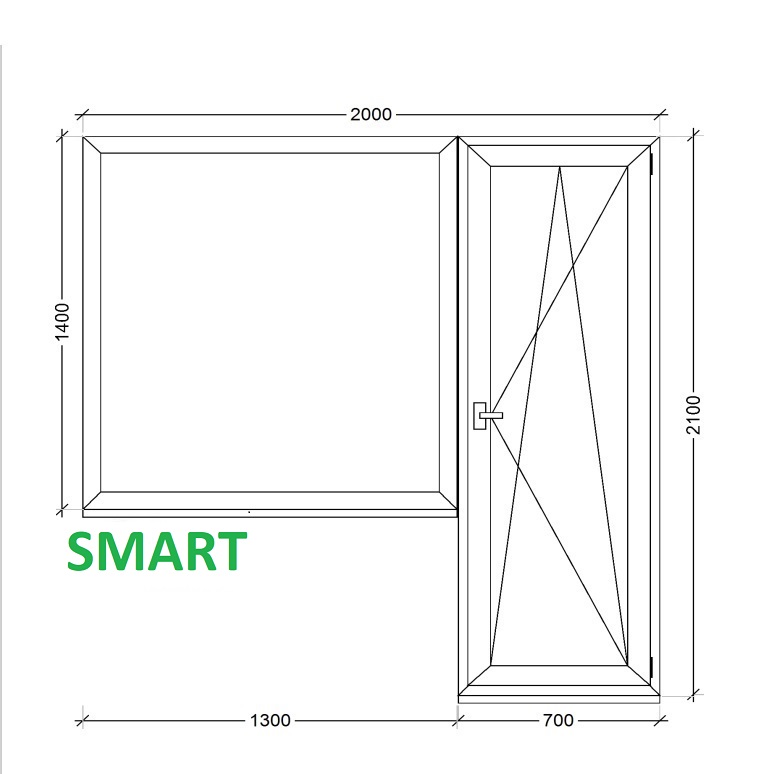 Пластиковая дверь ПВХ балконная правая 2000*2100 с глухим окном (Smart Energy 3кам)