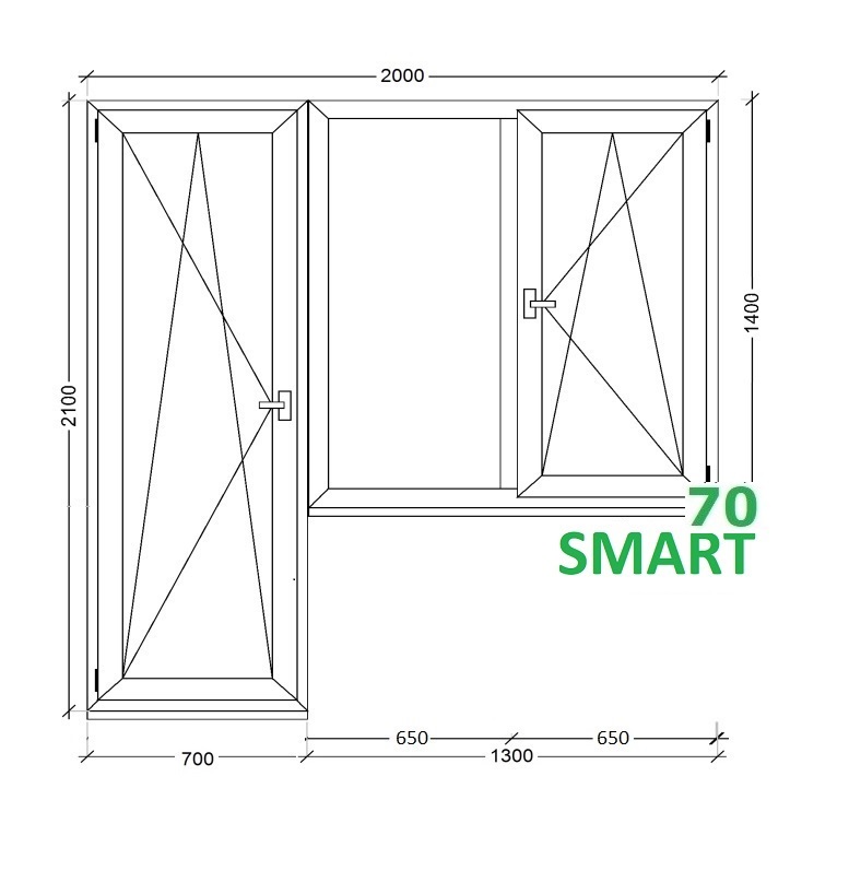 Пластиковая дверь ПВХ балконная левая 2000*2100 с окном, створка поворотно-откидная (Smart Energy 5к