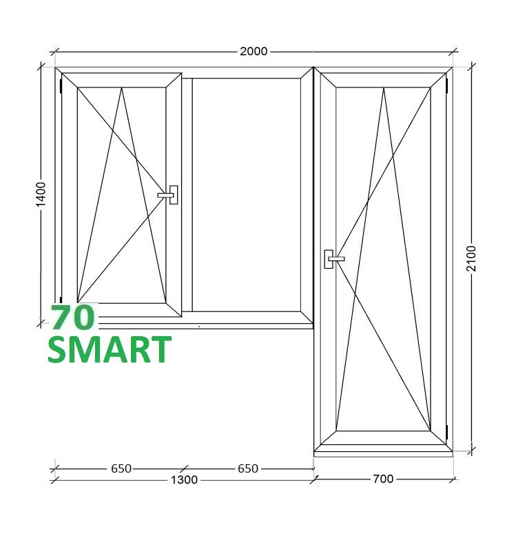 Дверь ПВХ балконная правая 2000*2100 с окном, створка поворотно-откидная (Smart Energy 70)