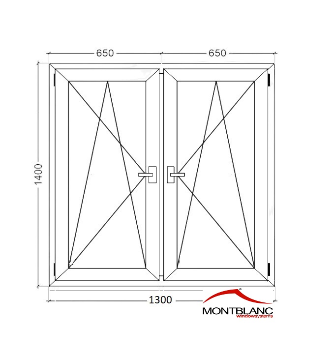 Пластиковое окно ПВХ двухстворчатое 1300*1400 поворотно-откидные створки (Montblank 5кам)