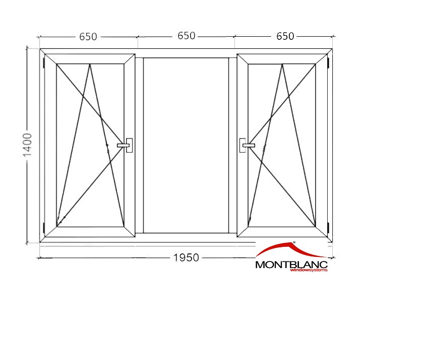 Пластиковое окно ПВХ трехстворчатое 1950*1400 поворотно-откидными створками (Montblank 5кам)