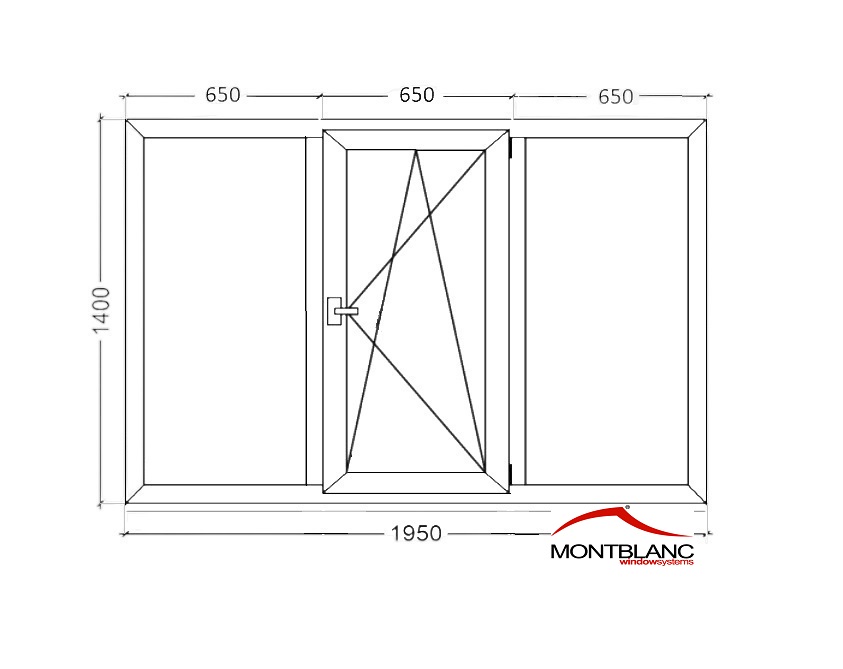 Пластиковое окно ПВХ трехстворчатое 1950*1400 поворотно-откидной створкой (Montblanc 5кам)