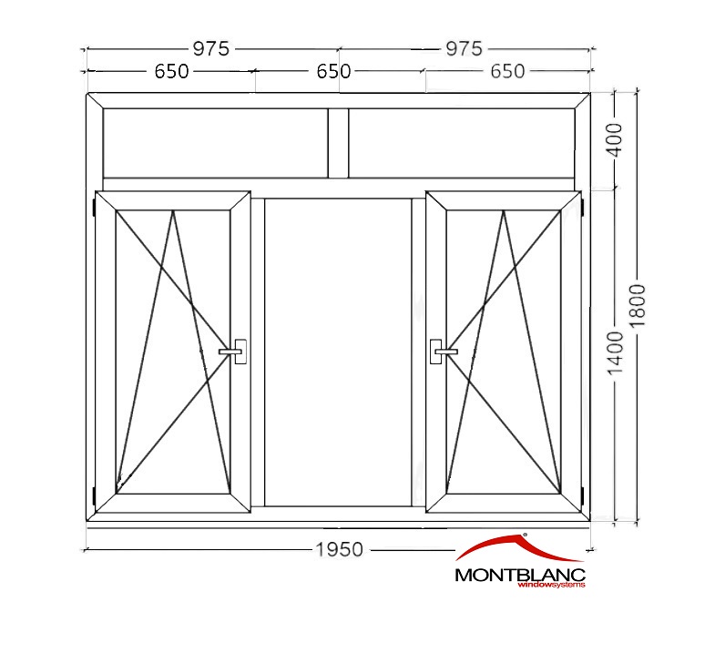 Пластиковое окно ПВХ трехстворчатое 1950*1800 поворотно-откидными створками (Montblanc 5кам)