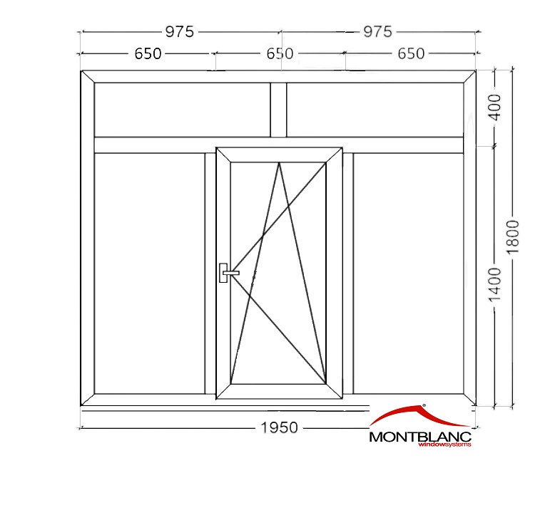 Пластиковое окно ПВХ трехстворчатое 1950*1800 поворотно-откидной створкой (Montblanc 5кам)