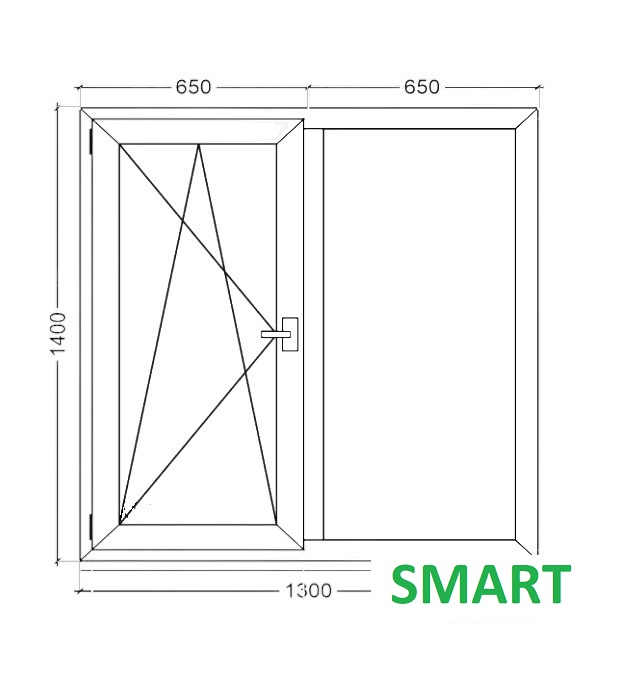 Пластиковое окно ПВХ двухстворчатое 1300*1400 поворотно-откидное, левое открывание (Smart Energy 3к)