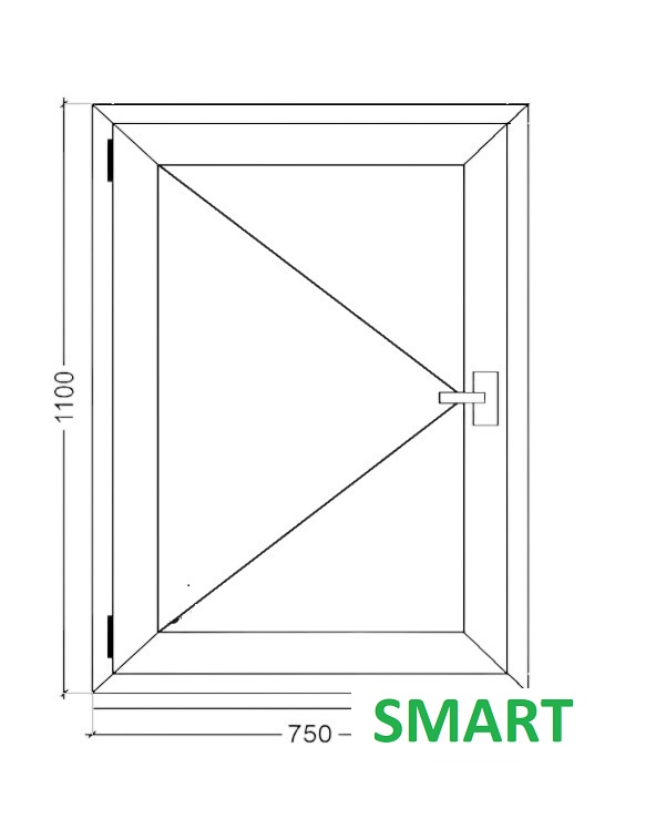 Пластиковое окно ПВХ одностворчатое 750*1100 распашное левое открывание (Smart Energy 3кам)